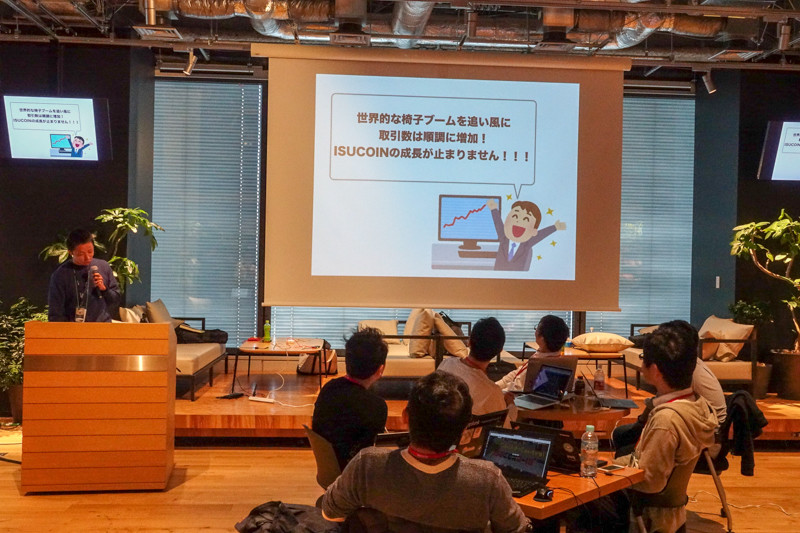 ISUCON8 本選スタート!今年の問題は「仮想椅子取引所 ISUCOIN」で、世界的な椅子ブームを追い風に取引数は順調に増加!ISUCOINの成長が止まりません!そしてなんと世界的SNS「いすばた」との提携が決定!本日18時より… https://t.co/MOww119oHw