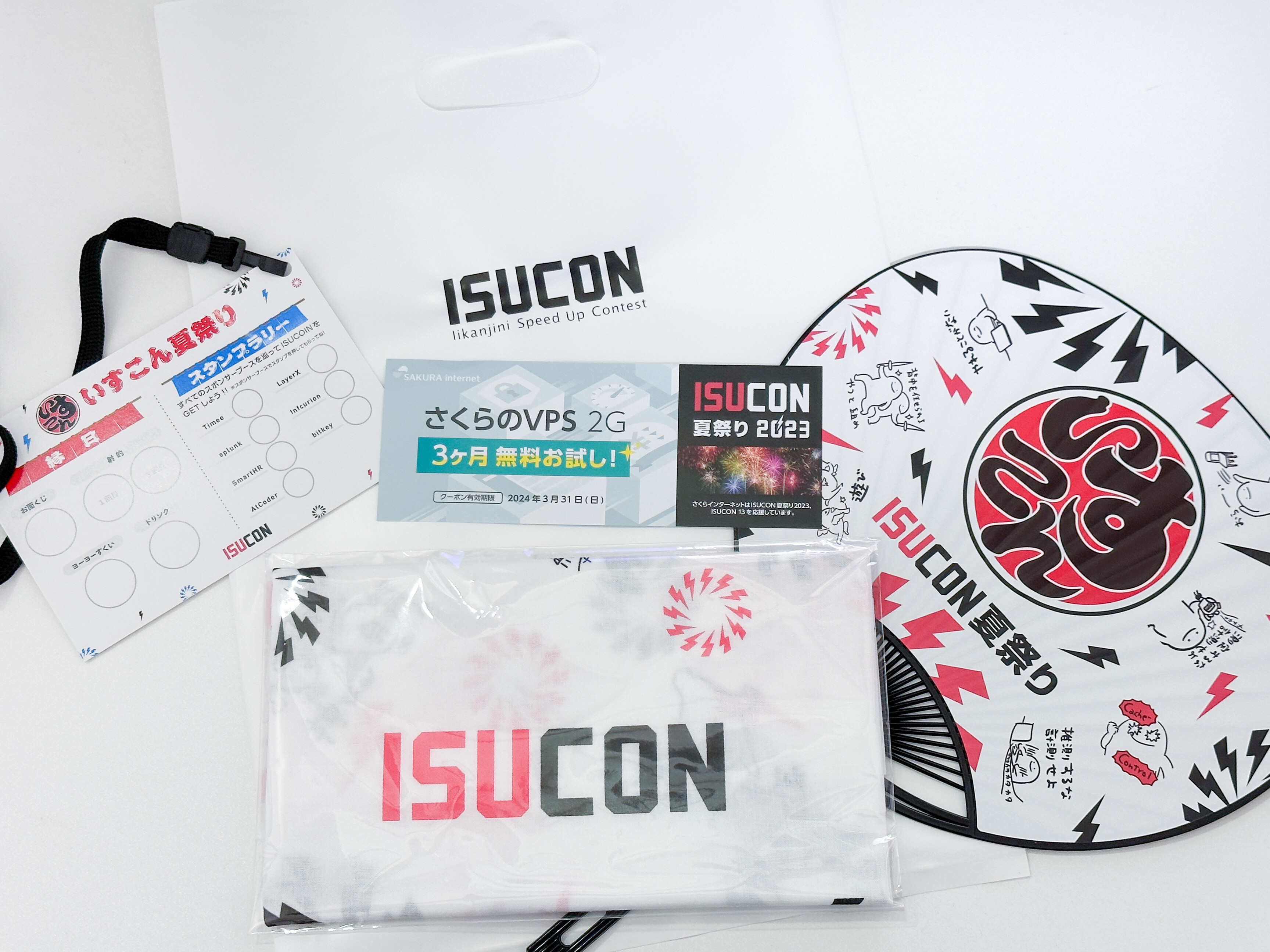 参加者の皆様には、さわやかな風を感じさせるうちわや、汗を拭き取るのに便利な手拭い、さくらインターネットさんから提供いただいたクーポンを参加者ノベルティとしてプレゼントさせていただきました。